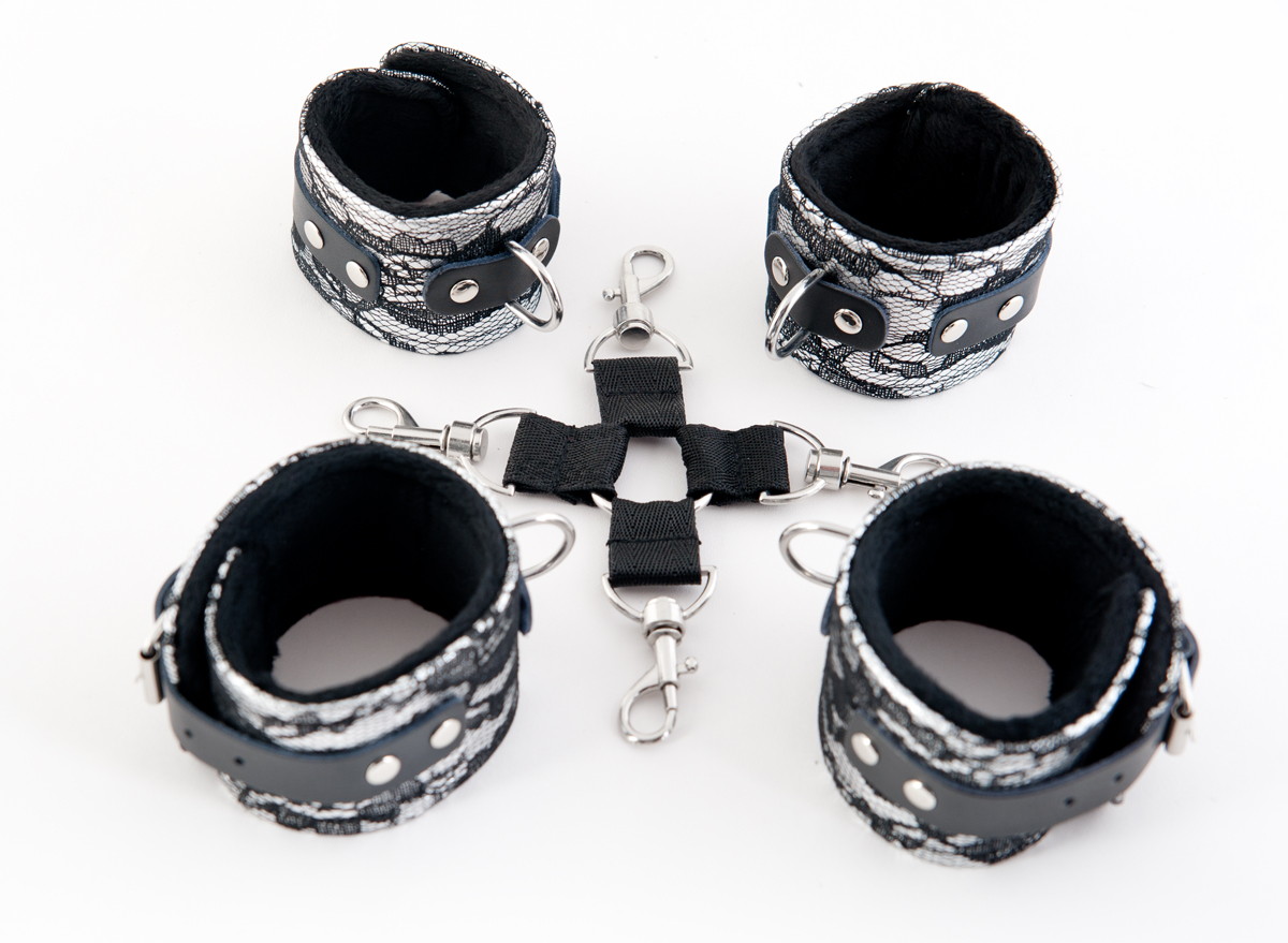Бондажный комплект из серии Marcus от ToyFa с гламурной отделкой из нежного кружева роскошное сочетание, чтобы в любой ситуации чувствовать себя неотразимой. С этим комплектом ты обездвижена и находишься в полной власти своего господина. Сцепка наручников и оков, пристегнутых к общему кольцу, ограничивает свободу вашего партнера. Меняйте положение по своему желанию: фиксируйте руки и ноги партнетра впереди и сзади. Карабины и цепочки позволяют убрать кольцо и превратить сцепку в наручники и оковы.