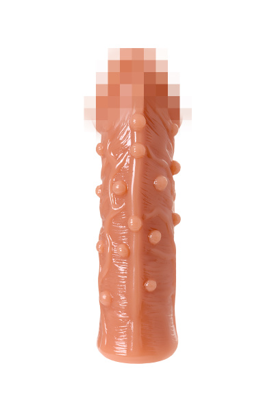 Увеличивающая насадка с фантазийным рельефом в виде пупырышек от KOKOS открывает новые возможности для взаимного удовольствия и воплощает фантазии о внушительном размере пениса. Увеличенный размер и объем полового члена добавляет мужчине уверенности в своих сексуальных возможностях. Дополнительная стимуляция партнерши для яркого и насыщенного оргазма. Увеличение продолжительности полового акта у мужчины - задержка эякуляции, и наращивание темпа приближения оргазма у женщины. Реалистичная насадка на пенис - необходимый элемент для вашей сексуальной игры, если вы хотите максимально удовлетворить свою партнершу и сделать ваш секс незабываемым. Насадка придает дополнительный объем и длину половому члену. Благодаря значительному размеру мощной головки зона G и вход во влагалище получают усиленную стимуляцию. Особенный рельеф в виде мягких пупырышек и многочисленных вен по всему стволу насадки деликатно ласкает чувствительные зоны. Дополнительный объем дарит то самое чувство наполненности, увеличивая поток возбуждения. Мужчина тоже будет ощущать стимуляцию за счет давления стенок влагалища на пенис. Для идеальной посадки по длине пениса используйте губчатую вставку, которая находится внутри насадки, подрезав ее до нужной длины. Не забудьте надеть презерватив в этом случае. В основании есть отверстие для мошонки, с помощью которого вы можете надежно зафиксировать насадку на пенисе и не ограничивать себя в активных движениях. Супер эластичный и нежный материал быстро принимает температуру тела, отлично тянется, сохраняя при этом прочность. Долговечность использования при соблюдении правил хранения и ухода за насадкой.Насадка сделана из высококачественного безвредного для человеческого организма материала, который прошел необходимые тестирования и сертификацию.Рекомендуем использовать до и после применения - дезинфицирующее средство для игрушки, чтобы обеспечить длительное скольжение и комфорт интимных отношений, рекомендуем использовать смазку на водной основе. Для бережного хранения материала пересыпать пудрой для игрушек. Хранить при температуре не выше 35 градусов, избегать попадания прямых солнечных лучей. Перед хранением необходимо хорошо просушить
