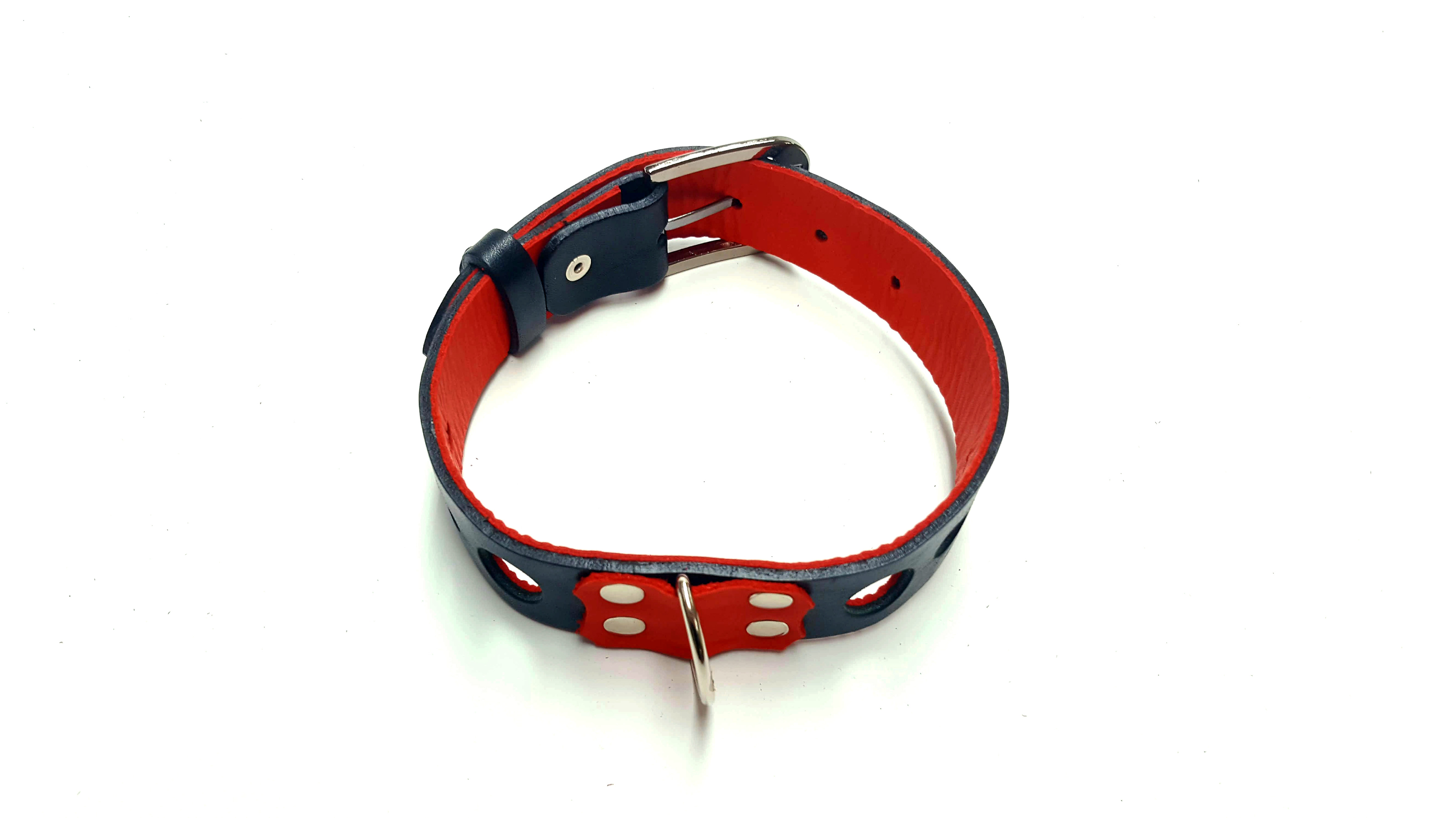 Ошейник БДСМ геймс – это не просто символ, а полноценное украшение, которое можно использовать во время предварительных игр Данный девайс может ограничивать подвижность, а может просто использоваться, как элемент костюма. Все зависит от сценария. Подклад ошейника выполнен из с мягкой красной кожи. В дизайне этого ошейника использованы: - литая пряжка - большое полукольцо - декоративный элемент из бежевой кожи