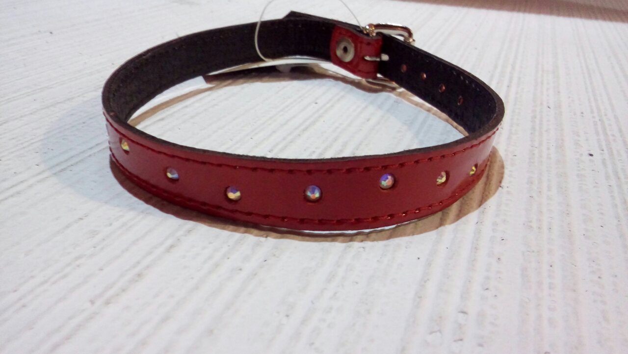 Ошейник декорированный стразами бренда ФЕТИШ компани. стильное украшение для романтичных особ. Узкий аксессуар изготовлен из плотной кожи высочайшего качества с прекрасной выделкой. Для вашего комфорта при изготовлении используется мягкая и приятная на ощупь синтетическая подкладка. По поверхности ошейника проходит стильная деккорирование стразами. Аксессуар станет роскошным дополнением к вашему эротическому костюму, и ваш партнер обязательно его оценит.