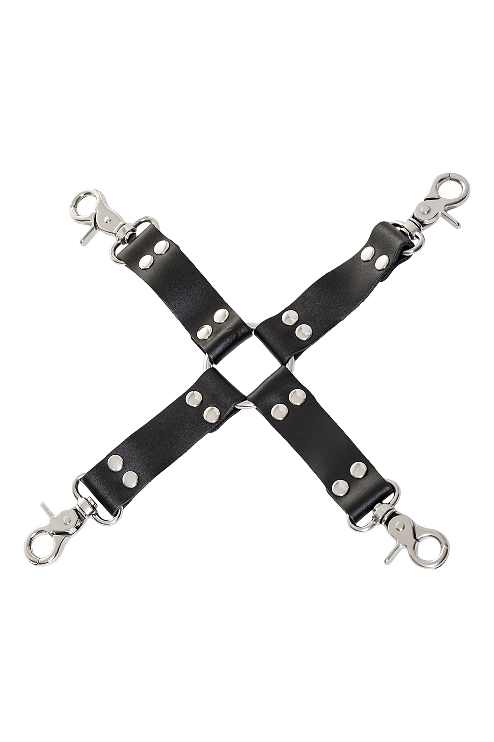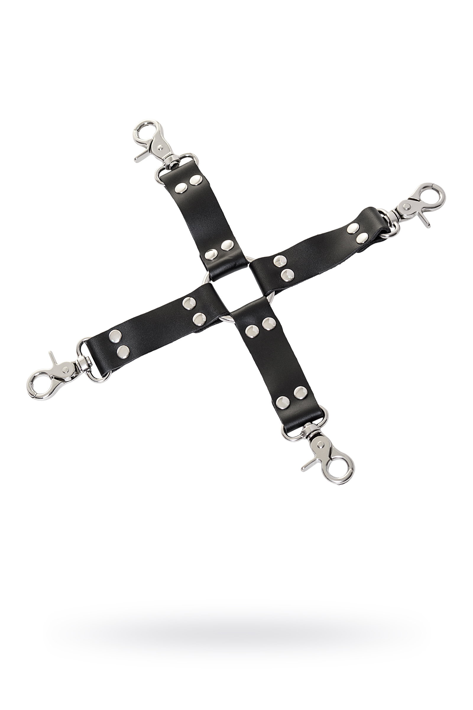 Переходник бондажный 4х - сторонний. Черные кожаные ремешки 9,5см, средние карабины.