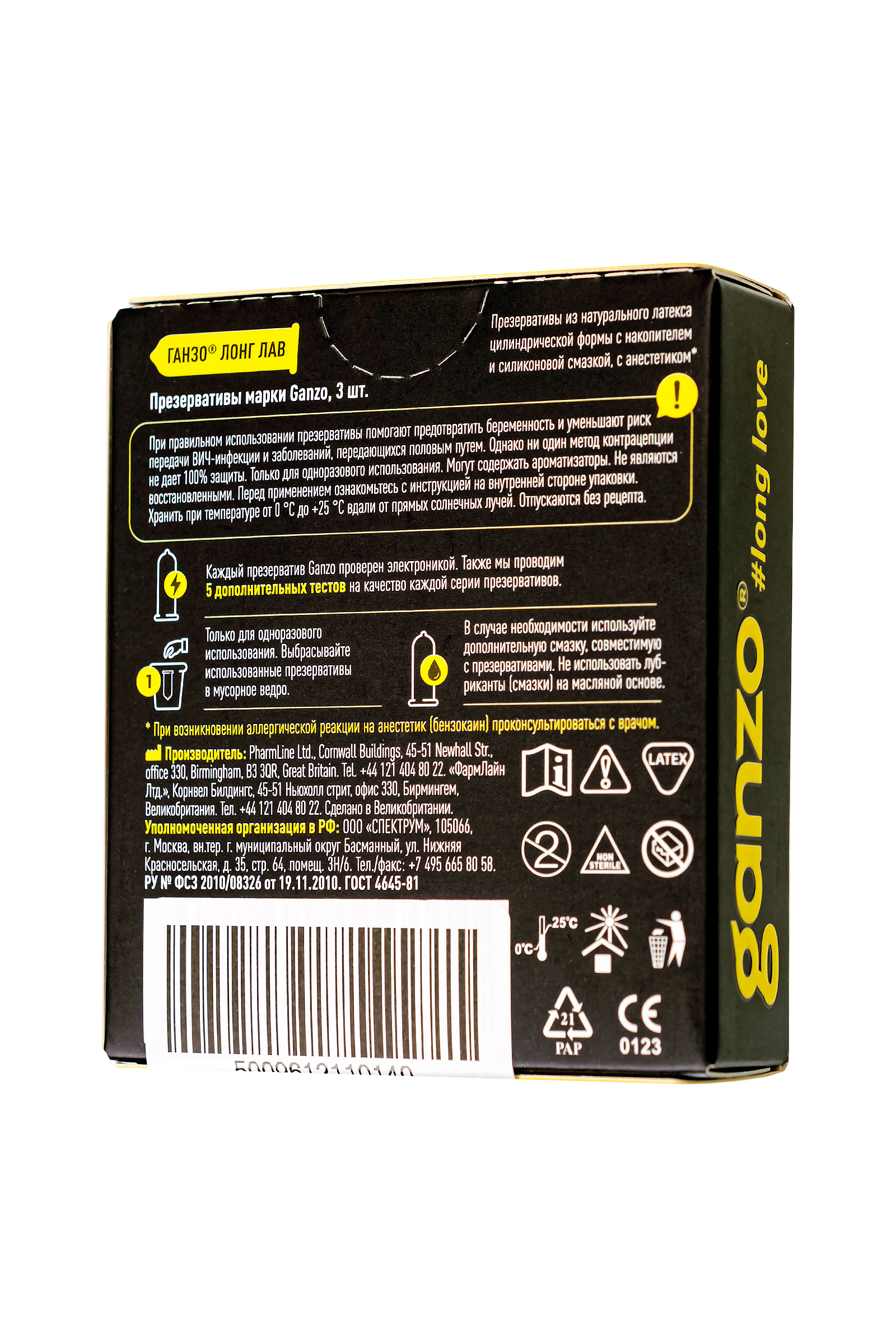 С бензокаином (анестетиком) для продления полового актаПрезервативы Ганзо Лонг Лав из натурального латекса с добавлением анастетика BENZOCAINE, снизят чувствительность рецепторов пениса, что позволит продлить удовольствие, не снижая желания. Ганзо Лонг Лав продлят вашу ночь любви и позволят доставить незабываемое удовольствие вашей партнерше. Презервативы из натурального латекса цилиндрической формы с накопителем и силиконовой смазкой с добавлением анестетика бензокаина