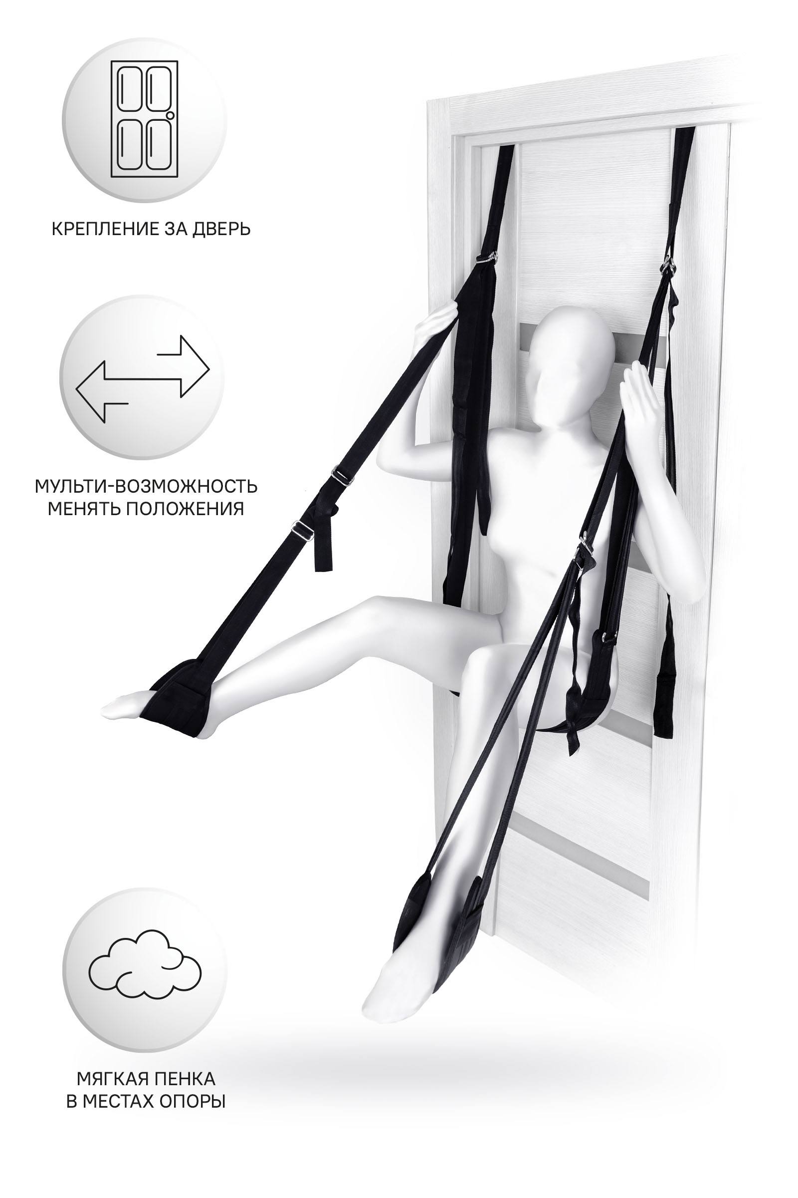 Секс-качели Ано́нимо – аксессуар для тех, кто действительно любит секс во всех его проявлениях. Расширенные возможности и абсолютно новые впечатления! Благодаря им вы сможете отдаться страсти, и в прямом смысле слова оторваться от земли. Качели фиксируются за дверью с помощью пластиковых цилиндров, поэтому вам не понадобятся дополнительные крепежные элементы для их установки. Все ремни регулируются, давая возможность бесконечно менять позы: сидя, полулежа, лицом или спиной к партнеру. Мягкие петли-опоры нежно обхватывают и поддерживают тело в любом положении. Тестируйте новые позы, добавляйте экстрима, варьируйте положение тела для собственного удовольствия, и наслаждайтесь парением! Материал: нейлон, ABS-пластик, пенка: EVA Максимальная длина ремня до бедер: 120 см Максимальная длина ремня до ног: 205 см Длина подушки под бедра: 50 см Длина подушки под ноги: 33 см Ширина подушки под бедра: 13 см Ширина подушки под ноги: 11,5 см Ширина ремня: 4см Диаметр цилиндра: 2,5 см