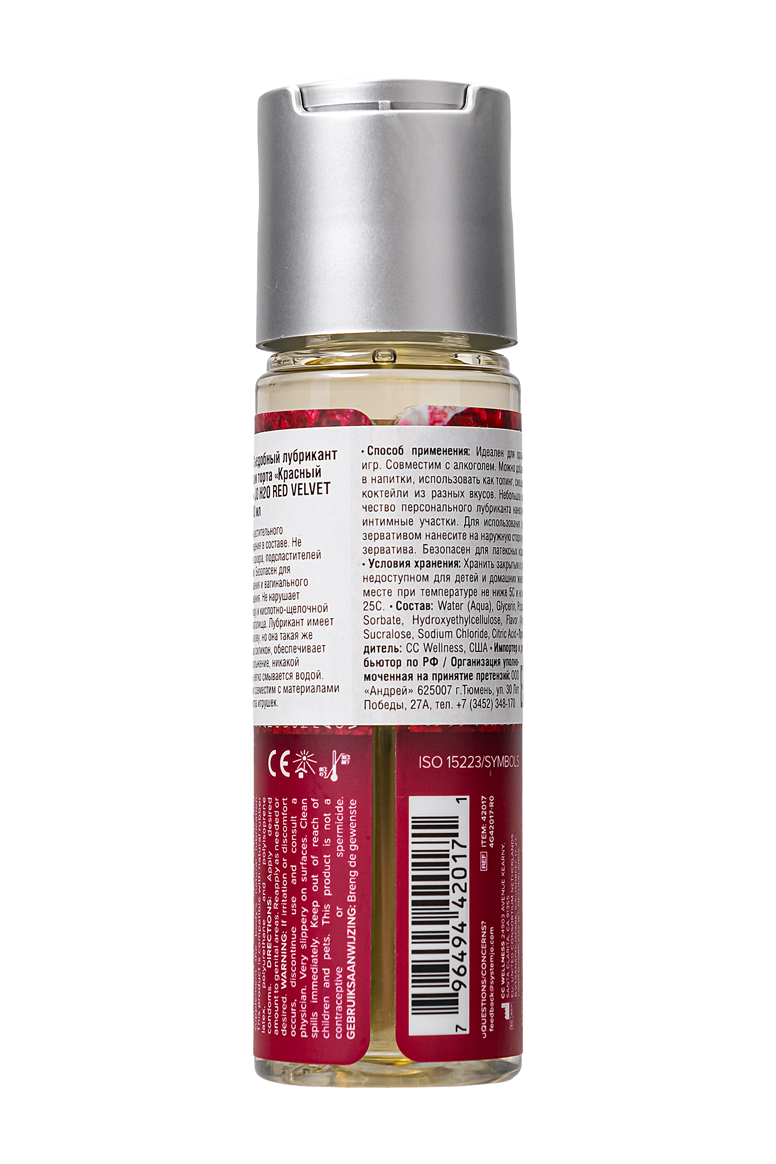 Лубрикант Систем Джо Red Velvet Flavored Lube — это сладкое и соблазнительное наслаждение с вкусом красного бархата, которое добавит пикантности в ваши интимные моменты. Этот лубрикант на водной основе подарит вам чувственные ощущения с шелковистым скольжением, создавая атмосферу изысканности и удовольствия. С нулевой калорийностью он позволяет наслаждаться каждым прикосновением, не беспокоясь о фигуре, а его легкая текстура и приятный вкус делают его идеальным для оральных ласк. Лубрикант создан с использованием натурального растительного глицерина, что делает его безопасным для микрофлоры и подходящим как для вагинального, так и для орального применения. После использования он легко смывается, не оставляя липкости, а увлажняющие свойства сохраняют вашу кожу мягкой и бархатистой. JO Red Velvet Flavored Lube также совместим с большинством игрушек и презервативов, что делает его универсальным выбором для множества интимных экспериментов. Удобный флакон объемом 60 мл с дозатором позволяет экономно расходовать продукт, всегда имея его под рукой для незабываемых моментов наслаждения. Как использовать: Нанесите небольшое количество лубриканта на интимные зоны или распределите по внешней стороне презерватива. Для использования в воде рекомендуется наносить перед контактом с водой. Повторяйте нанесение по мере необходимости, наслаждаясь каждым мгновением. После использования лубрикант легко смывается водой с мылом. Качество, которому можно доверять: Произведенный в США и сертифицированный по стандартам FDA и ISO, JO Red Velvet Flavored Lube сочетает в себе безопасность, высокое качество и изысканность. Наслаждайтесь каждым мгновением с этим роскошным лубрикантом, который добавит вкуса и страсти в каждый интимный момент. Объем: 60 мл. Производитель: CC Wellness, США