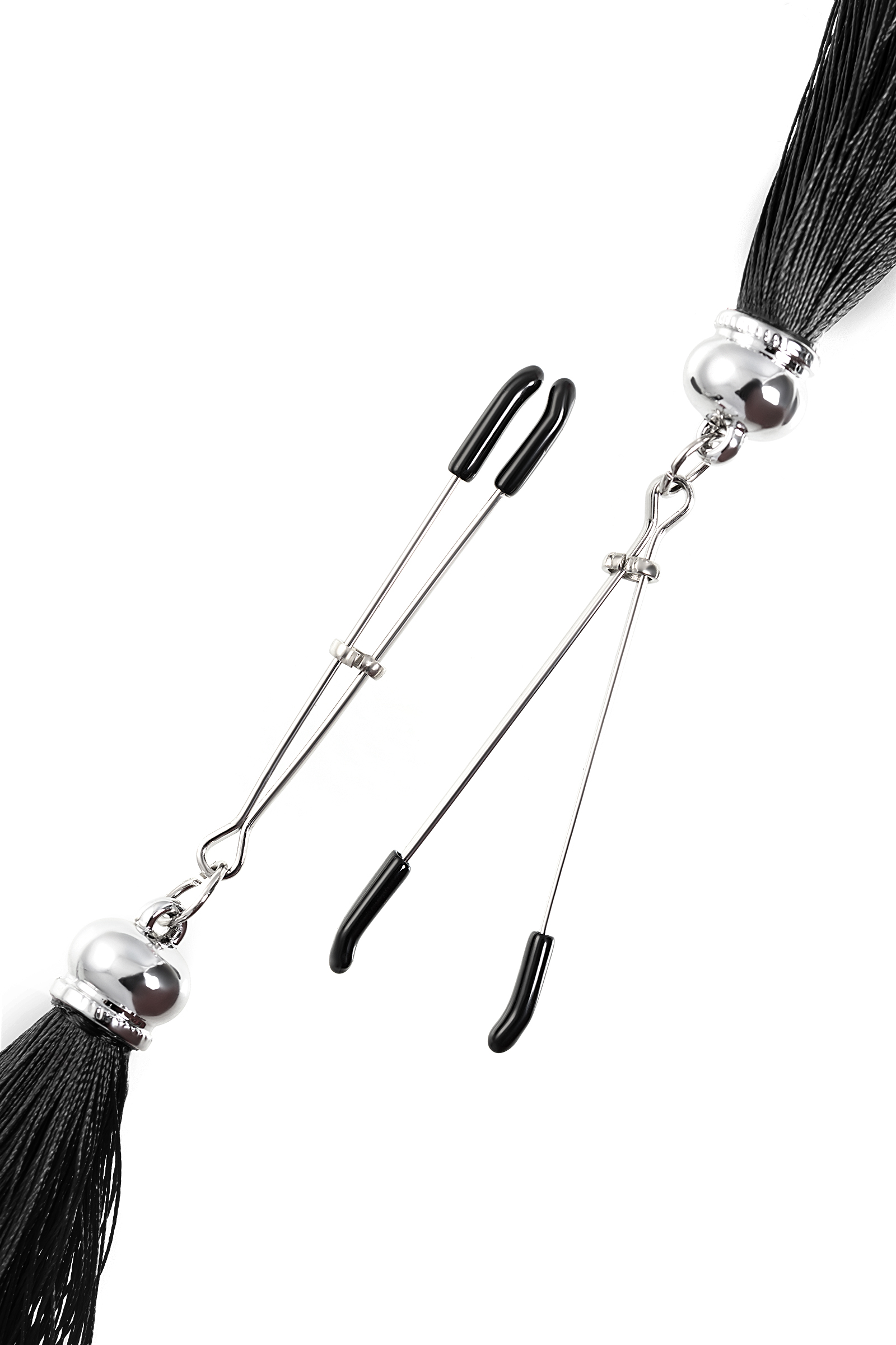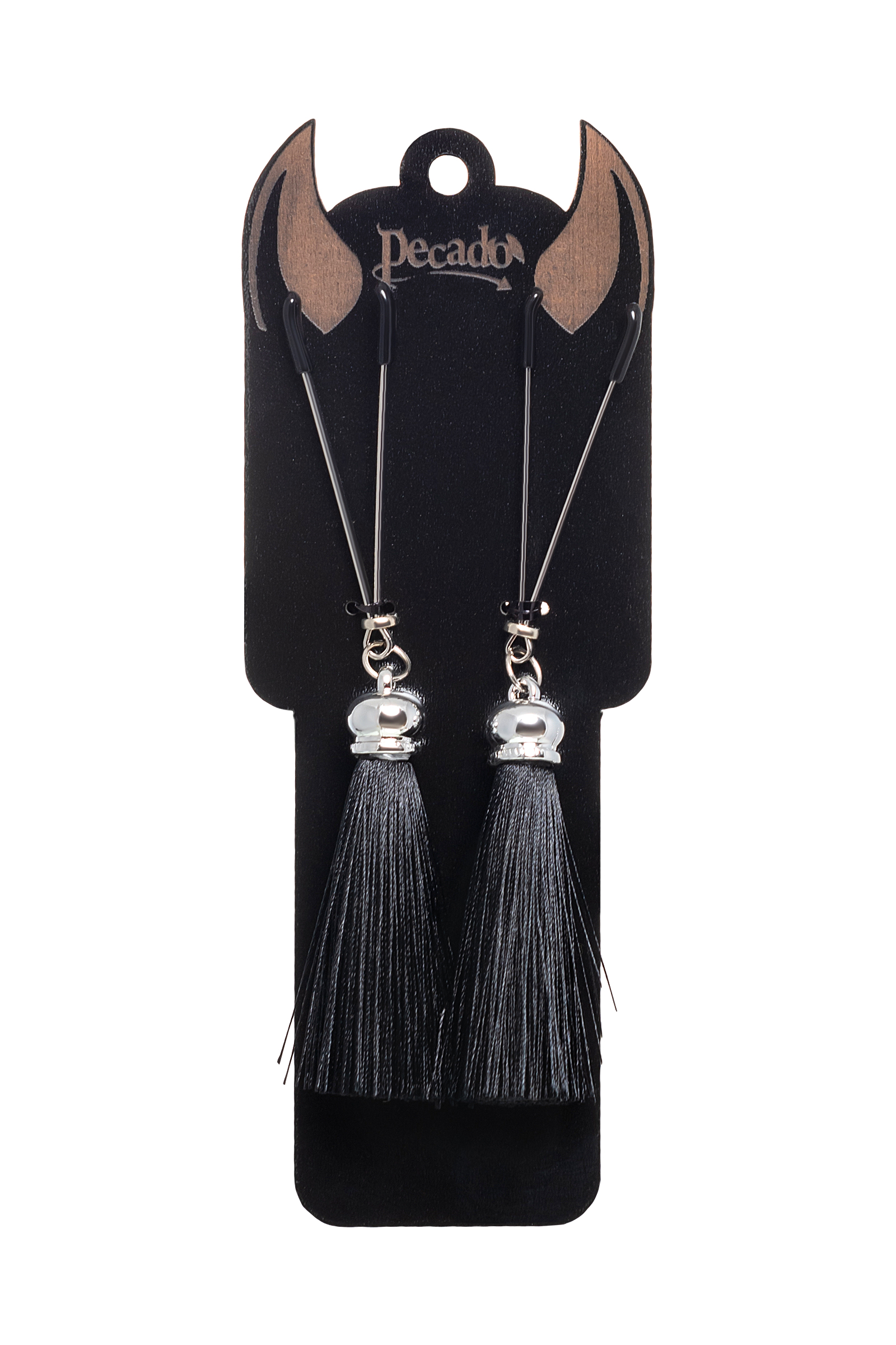 Попробуйте новые, дерзкие ощущения глубокого наслаждения! Зажимы-вилки от Pecado гарантируют смешение ярких чувств от тактильного контакта с нежной кожей сосков. Зажимы выполнены из высококачественных материалов. Металлическая часть компактная, приятная на ощупь. На концах черные резиновые наконечники, для безопасного воздействия на эрогенные зоны. Интенсивность сжатия аксессуара регулируется миниатюрными колечками. В зависимости от личных предпочтений и сценария игры, можно выбрать легкое пощипывание, или сильное сдавливание. Бахрома из натурального шелка, в черном цвете, добавляет манящую красоту смелому атрибуту. При каждом соблазнительном покачивании груди, кисточки движутся в пикантном ритме. Также подходит для стимуляции и возбуждении в области половых губ и клитора. ● Ручная работа. ● Надежная высококачественная фурнитура. ● Не требуют специального ухода.